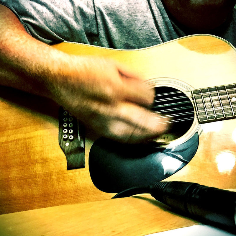 All of the guitars are my Gibson ES-335. Every take was through two amps, a Vox AC15 and a Fender Bassbreaker 15. Every take also used a Klon KTR overdrive pedal. The rhythm also used a Mooer E-Lady flanger. The leads used a Keeley D&M Drive and occasionally a Wampler Faux Tape Echo.
